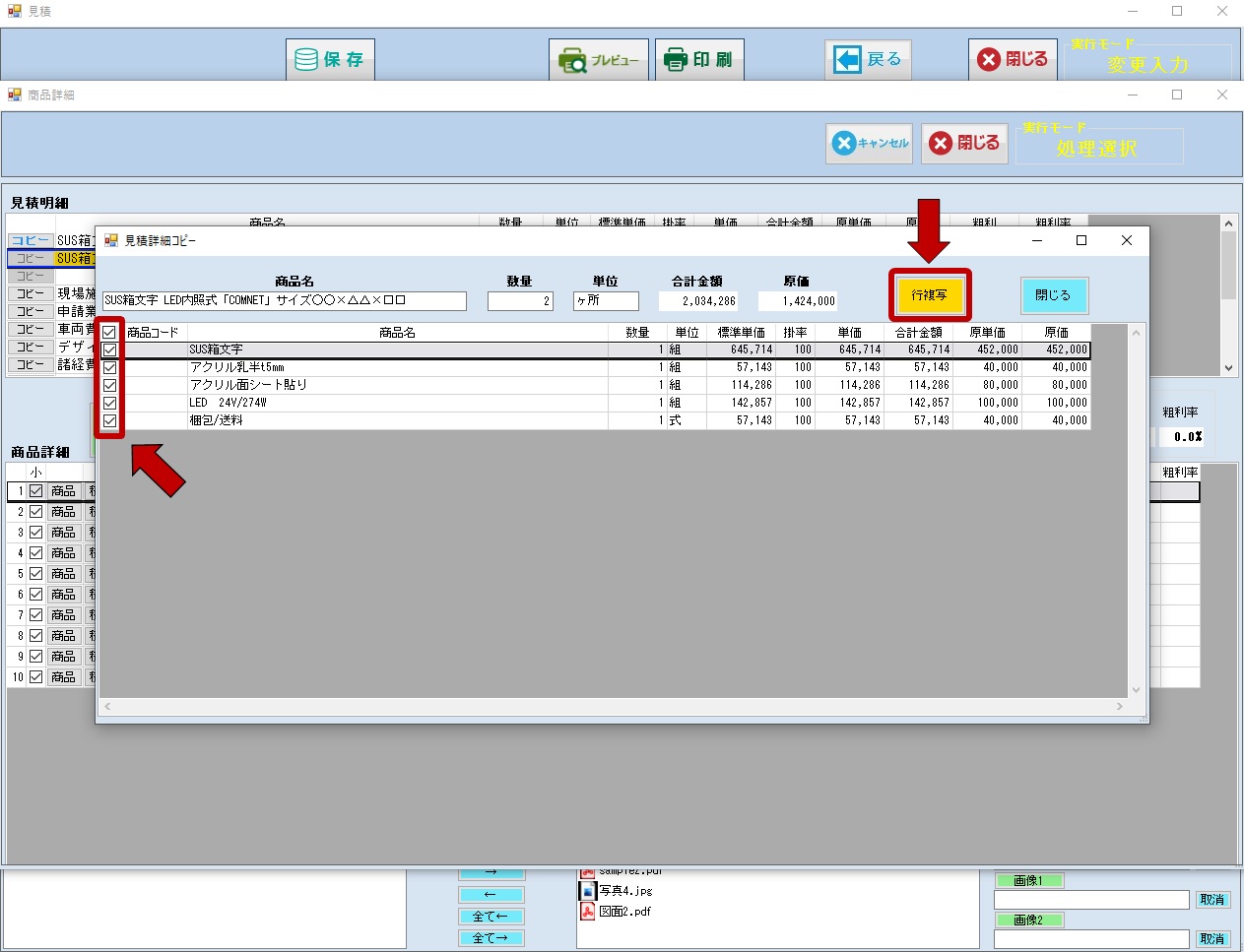 見積詳細の内容を別の明細の下にコピーしたいです。